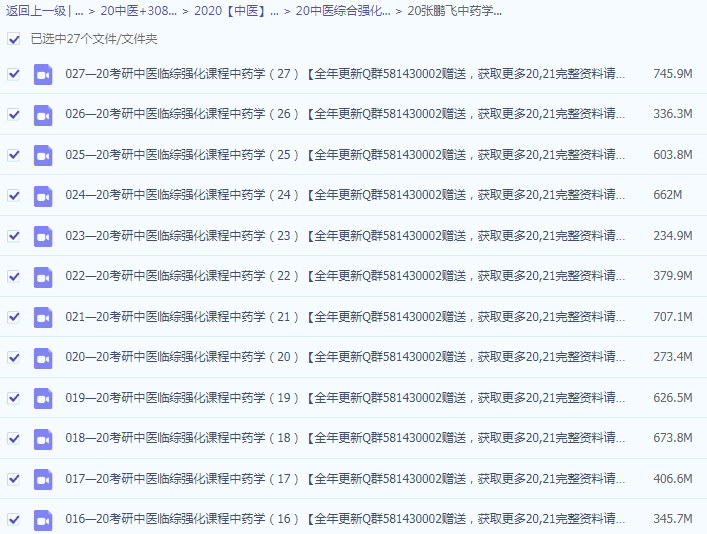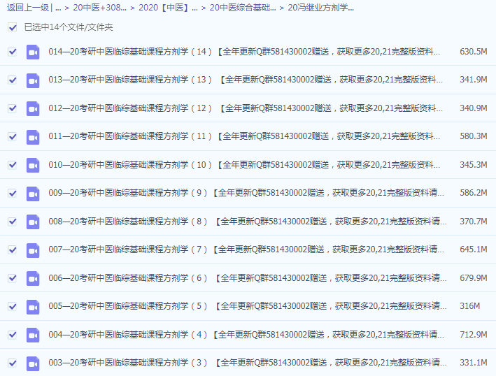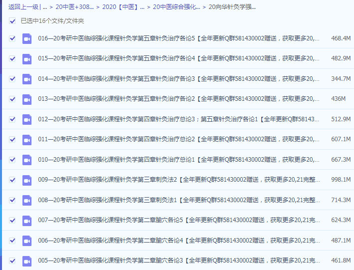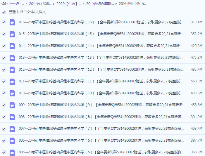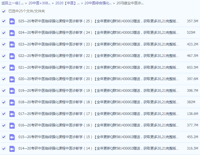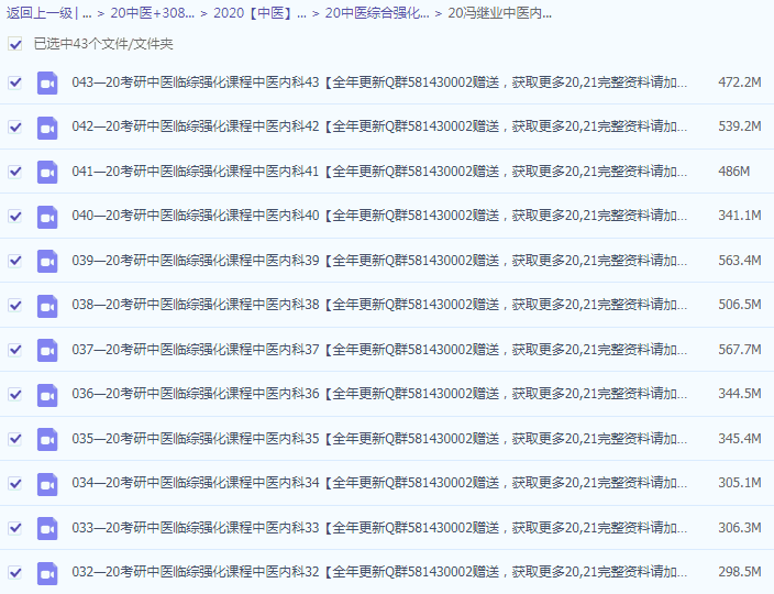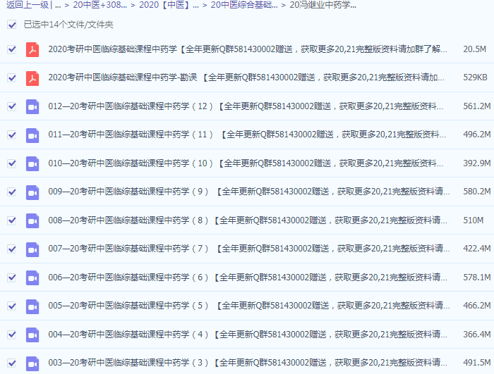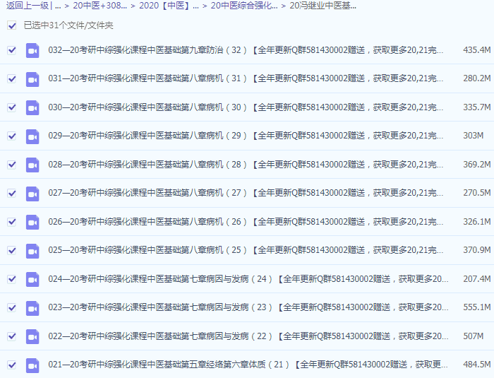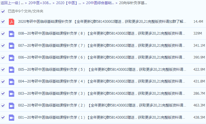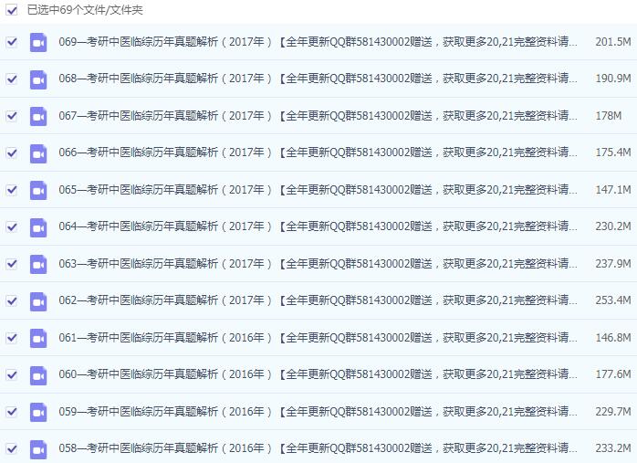 2020年考研中医临综合大纲解析+(向华针灸学+冯继业中药学+冯继业中医内科学+冯继业中医诊断学+冯继业方剂学+冯继业中医基础+冯德润中药学+杨净人文精神基础班)+(向华针灸学+冯继业中药学+冯继业中医内科学+冯继业中医诊断学+冯继业方剂学+冯继业中医基础+张鹏飞中药学暑期强化班)+(冯继业中医内科学+冯继业中医诊断学+冯继业方剂学+冯继业中医基础+张鹏飞中药学冲刺串讲班)+冯继业中医综合历年真题精讲班高清视频网课汇总【详情见截图/更新完毕】(部分含电子版PDF讲义)WD网校