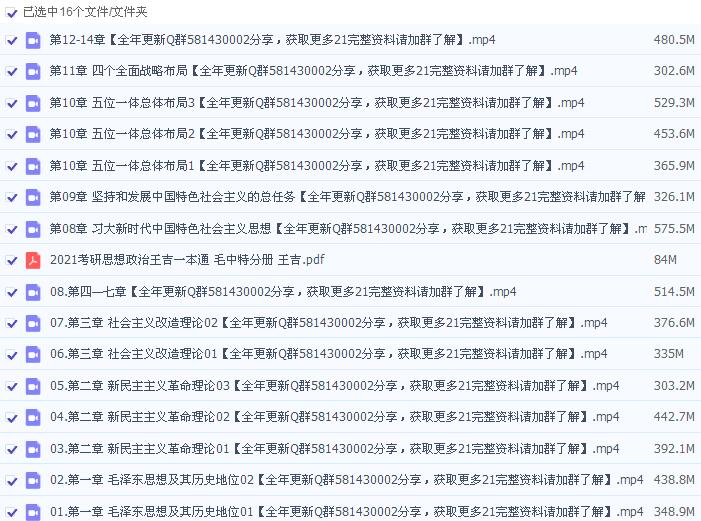 2021年王吉考研思想政治马克思主义基本原理+毛中特+中国近现代史纲要+思修道德修养与法律基础强化班高清视频网课汇总【马原34节完,毛中特14节完,史纲16节完,思修5节】(含电子版pdf讲义)爱QH