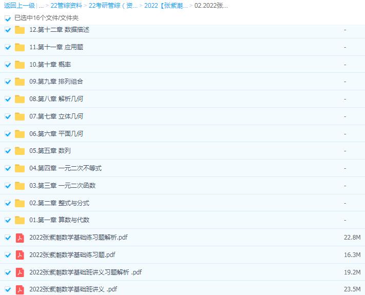 | └──张紫潮数学强化课教材(工商管理MBA、会计MPAcc、审计MAud、图书情报MLIS、公共管理MPA、旅游管理硕士MTA、工程管理MEM通用).pdf 123.16M