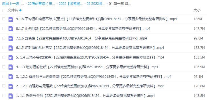 2022年考研199管理类联考(199管综)张紫潮初数学基础班+强化班+刷题班+初数学1998-2021真题班+提高8套卷+冲刺班+押题班+数学强化8套卷高清视频网课【详情见截图/更新完毕】(含电子版pdf讲义)