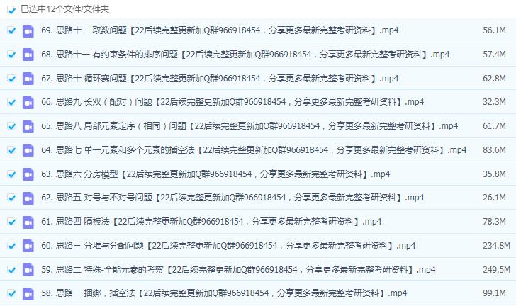 2022年考研199管综张紫潮初数学基础班-强化班-刷题班-初数学1998-2021真题班-提高8套卷-冲刺班-押题班-数学强化8套卷网盘视频课程[详情见截图-更新完毕](含电子版pdf讲义)](data/attachment/forum/202106/29/161446gaal3brg33t8s3jj.jpg)  2022年考研199管综张紫潮初数学基础班-强化班-刷题班-初数学1998-2021真题班-提高8套卷-冲刺班-押题班-数学强化8套卷网盘视频课程[详情见截图-更新完毕](含电子版pdf讲义)](data/attachment/forum/202106/29/161446skmj18kjrbfuh6u0.jpg)  2022年考研199管综张紫潮初数学基础班-强化班-刷题班-初数学1998-2021真题班-提高8套卷-冲刺班-押题班-数学强化8套卷网盘视频课程[详情见截图-更新完毕](含电子版pdf讲义)](data/attachment/forum/202106/29/161447aaebtu7bt7xxxcm7.jpg)  2022年考研199管综张紫潮初数学基础班-强化班-刷题班-初数学1998-2021真题班-提高8套卷-冲刺班-押题班-数学强化8套卷网盘视频课程[详情见截图-更新完毕](含电子版pdf讲义)](data/attachment/forum/202106/29/161447lwsrlmfwhxdy3g7x.jpg)  2022年考研199管综张紫潮初数学基础班-强化班-刷题班-初数学1998-2021真题班-提高8套卷-冲刺班-押题班-数学强化8套卷网盘视频课程[详情见截图-更新完毕](含电子版pdf讲义)](data/attachment/forum/202106/29/161447nyyoenpw6wnyyjya.jpg)  2022年考研199管综张紫潮初数学基础班-强化班-刷题班-初数学1998-2021真题班-提高8套卷-冲刺班-押题班-数学强化8套卷网盘视频课程[详情见截图-更新完毕](含电子版pdf讲义)](data/attachment/forum/202106/29/161447u6vvs6sf33n3s6eg.jpg)  2022年考研199管综张紫潮初数学基础班-强化班-刷题班-初数学1998-2021真题班-提高8套卷-冲刺班-押题班-数学强化8套卷网盘视频课程[详情见截图-更新完毕](含电子版pdf讲义)](data/attachment/forum/202106/29/161447srxtrtz3xrgbznlm.jpg)  2022年考研199管综张紫潮初数学基础班-强化班-刷题班-初数学1998-2021真题班-提高8套卷-冲刺班-押题班-数学强化8套卷网盘视频课程[详情见截图-更新完毕](含电子版pdf讲义)](data/attachment/forum/202106/29/161447n7dtynjm5m7gtupn.jpg)  2022年考研199管综张紫潮初数学基础班-强化班-刷题班-初数学1998-2021真题班-提高8套卷-冲刺班-押题班-数学强化8套卷网盘视频课程[详情见截图-更新完毕](含电子版pdf讲义)](data/attachment/forum/202106/29/161448jkf7x6mkfhxx0xob.jpg)  2022年考研199管综张紫潮初数学基础班-强化班-刷题班-初数学1998-2021真题班-提高8套卷-冲刺班-押题班-数学强化8套卷网盘视频课程[详情见截图-更新完毕](含电子版pdf讲义)](data/attachment/forum/202106/29/161448oz8kdi7udizm2uid.jpg)  2022年考研199管综张紫潮初数学基础班-强化班-刷题班-初数学1998-2021真题班-提高8套卷-冲刺班-押题班-数学强化8套卷网盘视频课程[详情见截图-更新完毕](含电子版pdf讲义)](data/attachment/forum/202106/29/161448bszww2www90q0s2y.jpg)  2022年考研199管综张紫潮初数学基础班-强化班-刷题班-初数学1998-2021真题班-提高8套卷-冲刺班-押题班-数学强化8套卷网盘视频课程[详情见截图-更新完毕](含电子版pdf讲义)](data/attachment/forum/202106/29/161449jtcf90nsnslws6r9.jpg)  2022年考研199管综张紫潮初数学基础班-强化班-刷题班-初数学1998-2021真题班-提高8套卷-冲刺班-押题班-数学强化8套卷网盘视频课程[详情见截图-更新完毕](含电子版pdf讲义)](data/attachment/forum/202109/07/160820t41ff4fq9rrdrq48.jpg)  2022年考研199管综张紫潮初数学基础班-强化班-刷题班-初数学1998-2021真题班-提高8套卷-冲刺班-押题班-数学强化8套卷网盘视频课程[详情见截图-更新完毕](含电子版pdf讲义)](data/attachment/forum/202108/02/220920j029iwr42k2aa1i3.jpg)  2022年考研199管综张紫潮初数学基础班-强化班-刷题班-初数学1998-2021真题班-提高8套卷-冲刺班-押题班-数学强化8套卷网盘视频课程[详情见截图-更新完毕](含电子版pdf讲义)](data/attachment/forum/202108/02/220920wpw3bks88o22sack.jpg)  2022年考研199管综张紫潮初数学基础班-强化班-刷题班-初数学1998-2021真题班-提高8套卷-冲刺班-押题班-数学强化8套卷网盘视频课程[详情见截图-更新完毕](含电子版pdf讲义)](data/attachment/forum/202108/02/220921kis7j83jgij7jicy.jpg)  2022年考研199管综张紫潮初数学基础班-强化班-刷题班-初数学1998-2021真题班-提高8套卷-冲刺班-押题班-数学强化8套卷网盘视频课程[详情见截图-更新完毕](含电子版pdf讲义)](data/attachment/forum/202108/02/220922nxl6c6ox8ch0caaa.jpg)  2022年考研199管综张紫潮初数学基础班-强化班-刷题班-初数学1998-2021真题班-提高8套卷-冲刺班-押题班-数学强化8套卷网盘视频课程[详情见截图-更新完毕](含电子版pdf讲义)](data/attachment/forum/202108/02/220922yskdmdidzfkdfvop.jpg)  2022年考研199管综张紫潮初数学基础班-强化班-刷题班-初数学1998-2021真题班-提高8套卷-冲刺班-押题班-数学强化8套卷网盘视频课程[详情见截图-更新完毕](含电子版pdf讲义)](data/attachment/forum/202108/02/220922g28yztdbdcn49tjj.jpg)  2022年考研199管综张紫潮初数学基础班-强化班-刷题班-初数学1998-2021真题班-提高8套卷-冲刺班-押题班-数学强化8套卷网盘视频课程[详情见截图-更新完毕](含电子版pdf讲义)](data/attachment/forum/202108/02/220922qu2or2pr2momoqoz.jpg)  2022年考研199管综张紫潮初数学基础班-强化班-刷题班-初数学1998-2021真题班-提高8套卷-冲刺班-押题班-数学强化8套卷网盘视频课程[详情见截图-更新完毕](含电子版pdf讲义)](data/attachment/forum/202109/07/160844ug6qylf5ys0q9gva.jpg)  2022年考研19