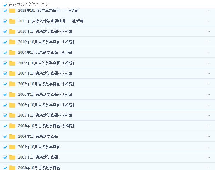 | ├──张紫潮数学基础练习题(工商管理MBA、会计MPAcc、审计MAud、图书情报MLIS、公共管理MPA、旅游管理硕士MTA、工程管理MEM通用).pdf 41.33M
