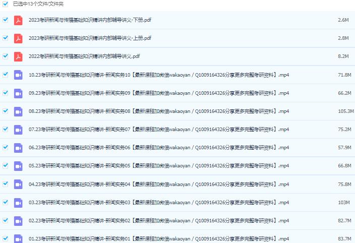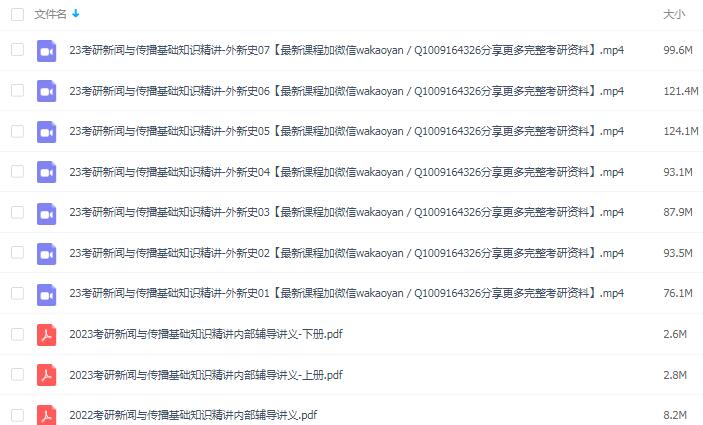 2023年新闻与传播硕士考研樱桃新闻实务理论+乔木网络传播概论+友契新闻学理论+丘梦中国新闻史+李木子传播学理论+王慧星外国新闻史基础知识精讲班高清视频网课[详情见目录-更新完毕](含电子书pdf讲义)W都
